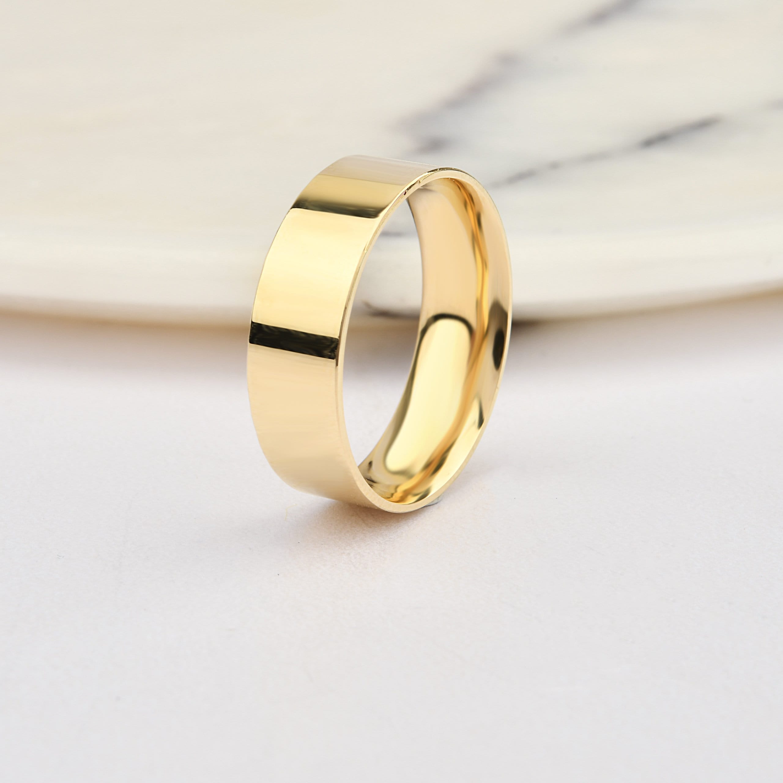 6mm Flat 14K-18K Gold Wedding Band, Gold Polished Ring, Free Laser Engrave, Comfort Wedding Band, Gold Engagement Ring, Gold Wedding Ring.