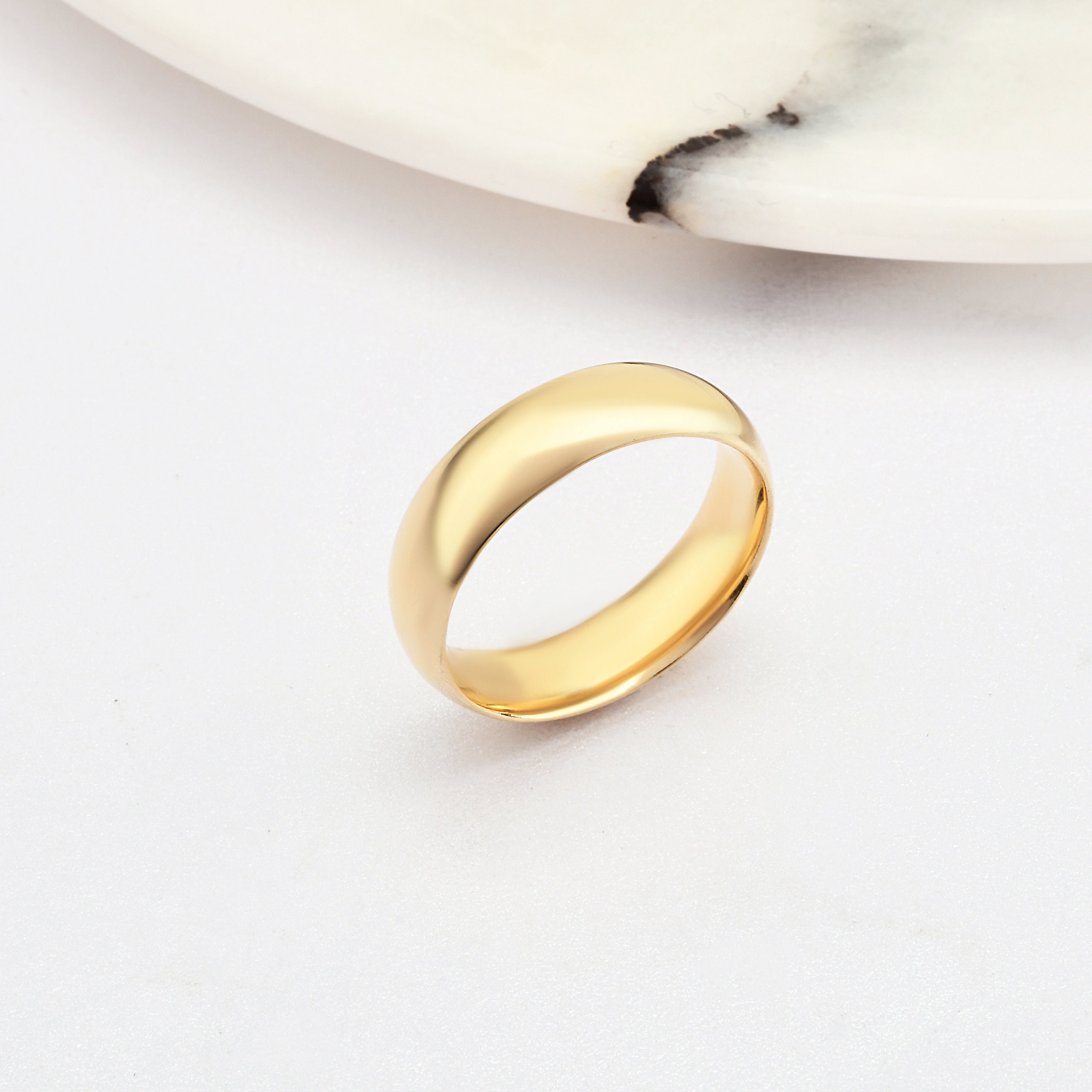 5mm Domed 14K-18K Gold Wedding Band, Gold Polished Ring, Free Laser Engrave, Comfort Wedding Band, Gold Engagement Ring, Gold Wedding Ring.