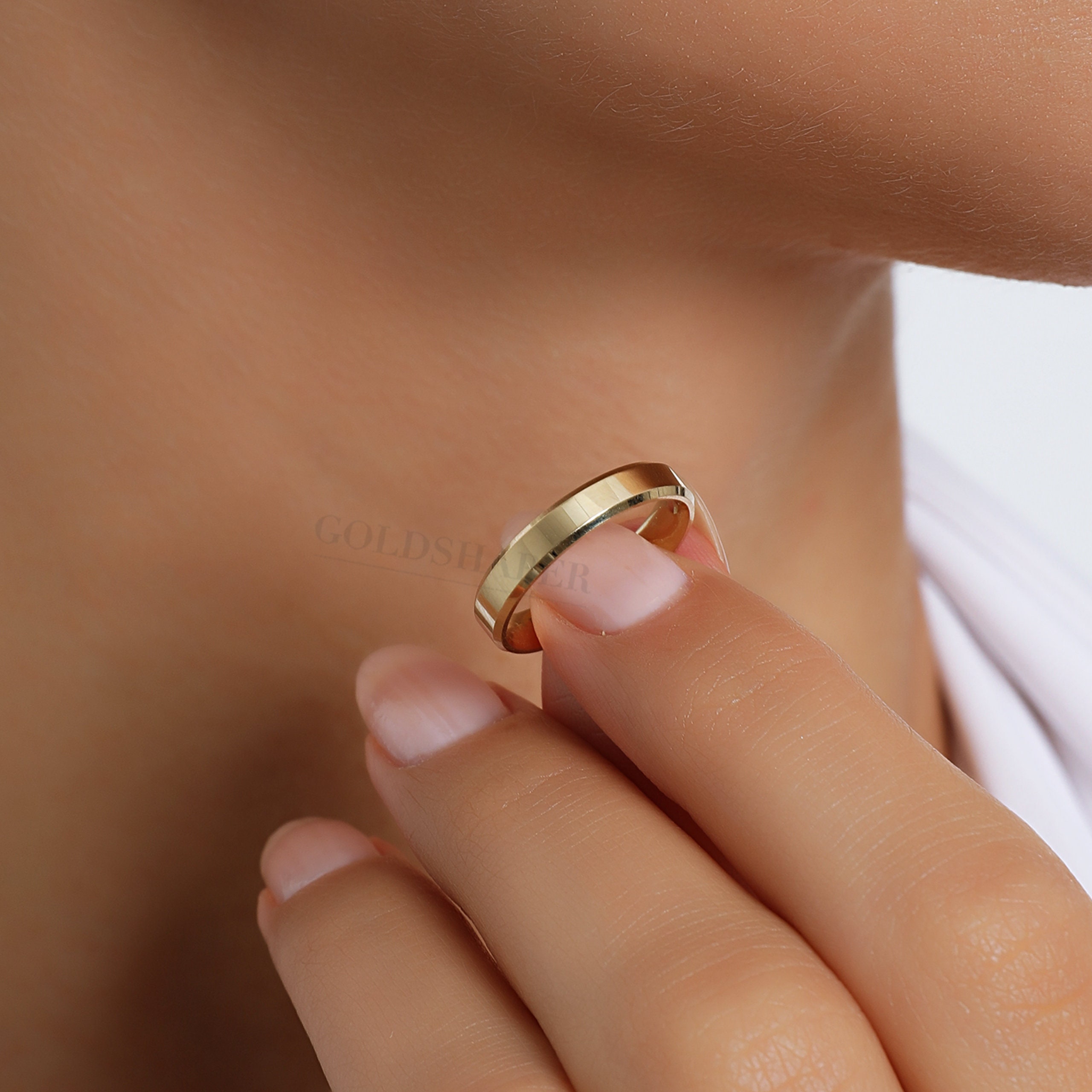 3mm Flat 14K-18K Gold Wedding Band, Diamond Cut Corners Band, Gold Polished Ring, Free Engrave, Comfort Wedding Band, Gold Engagement Ring.